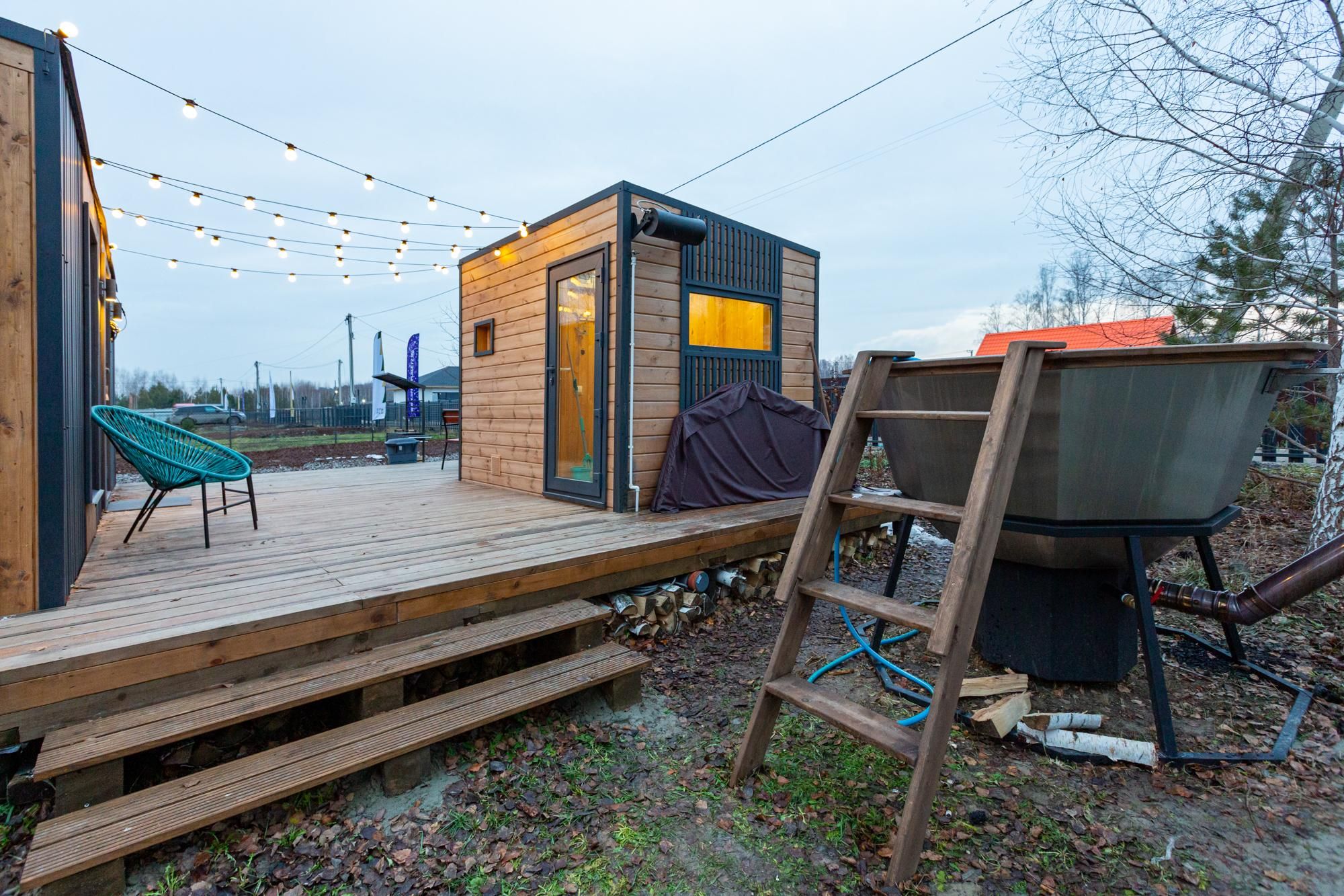 | Домик Домик четвертый с террасой и банькой | 24 кв.м. | 2 чел. | Мангальная зона / беседка, Мебель (диван раскладной, зеркало, кровать двуспальная, кухонная мебель,... |