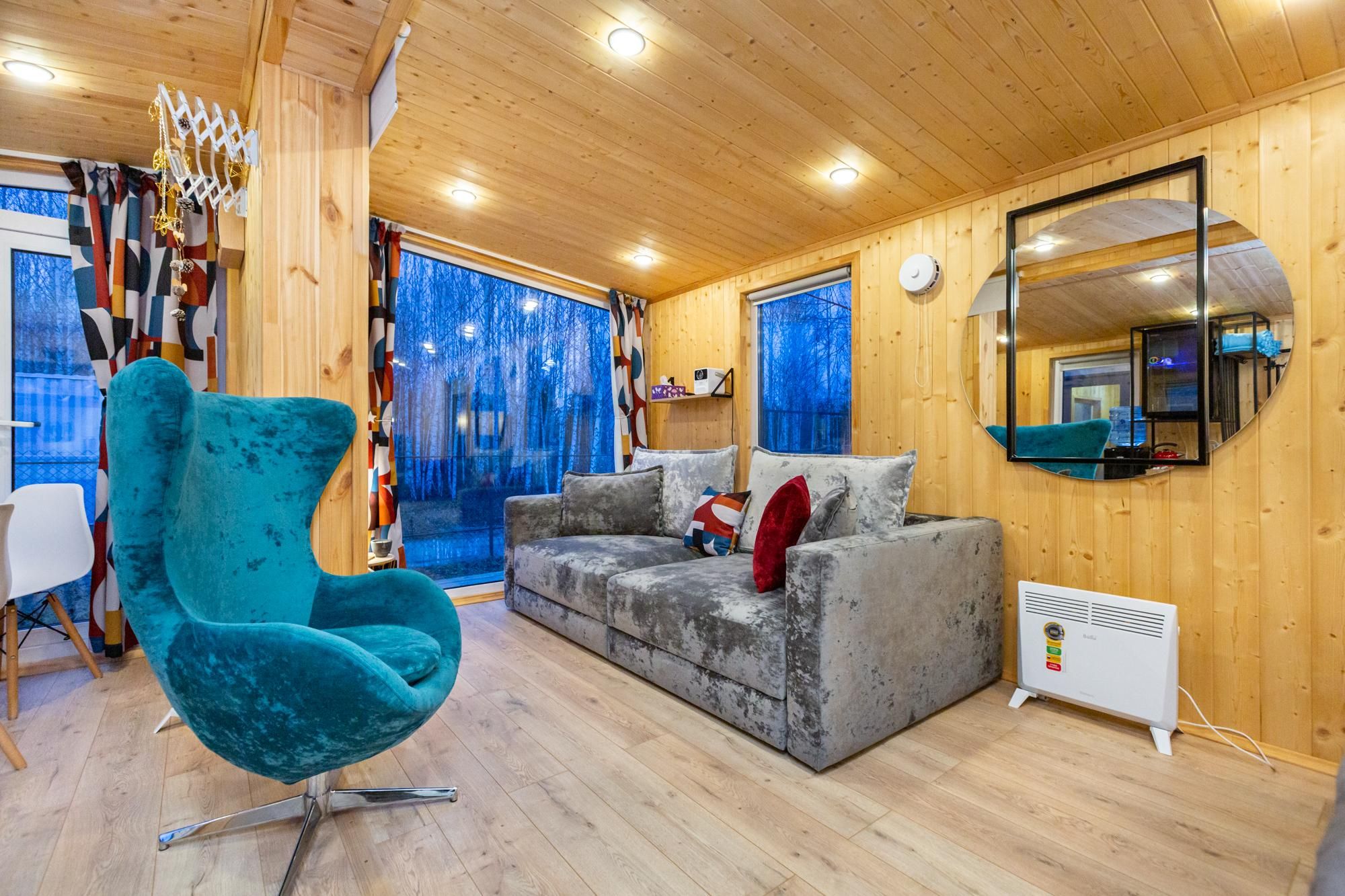 - Мебель: диван раскладной, зеркало, кровать двуспальная, кухонная мебель, стол, стулья